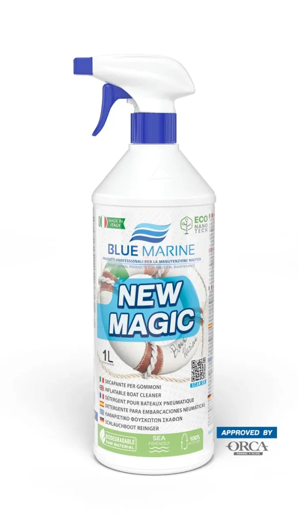 New Magic er et spesialtilpasset dyprens vaskemiddel for pongtonger i både PVC og Hypalon/neopren materiale. Rengjør dypt og fjerner alle typer smuss. Etterlater «porene» åpne og rene!