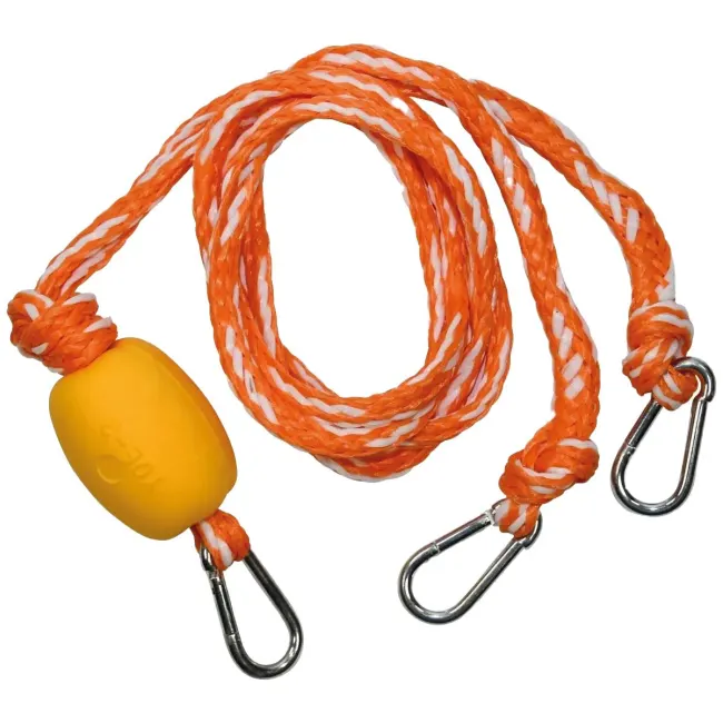 Spinera splittline (fordelertau) er en solid og praktisk løsning for båter uten vannskistang eller fast slepekrok. Linen festes i hver side av hekken med medfølgende karabinkroker og danner en Y-form, slik at slepelinen trekkes fra midten av båten – trygt bak påhengsmotor eller hekkdrev.