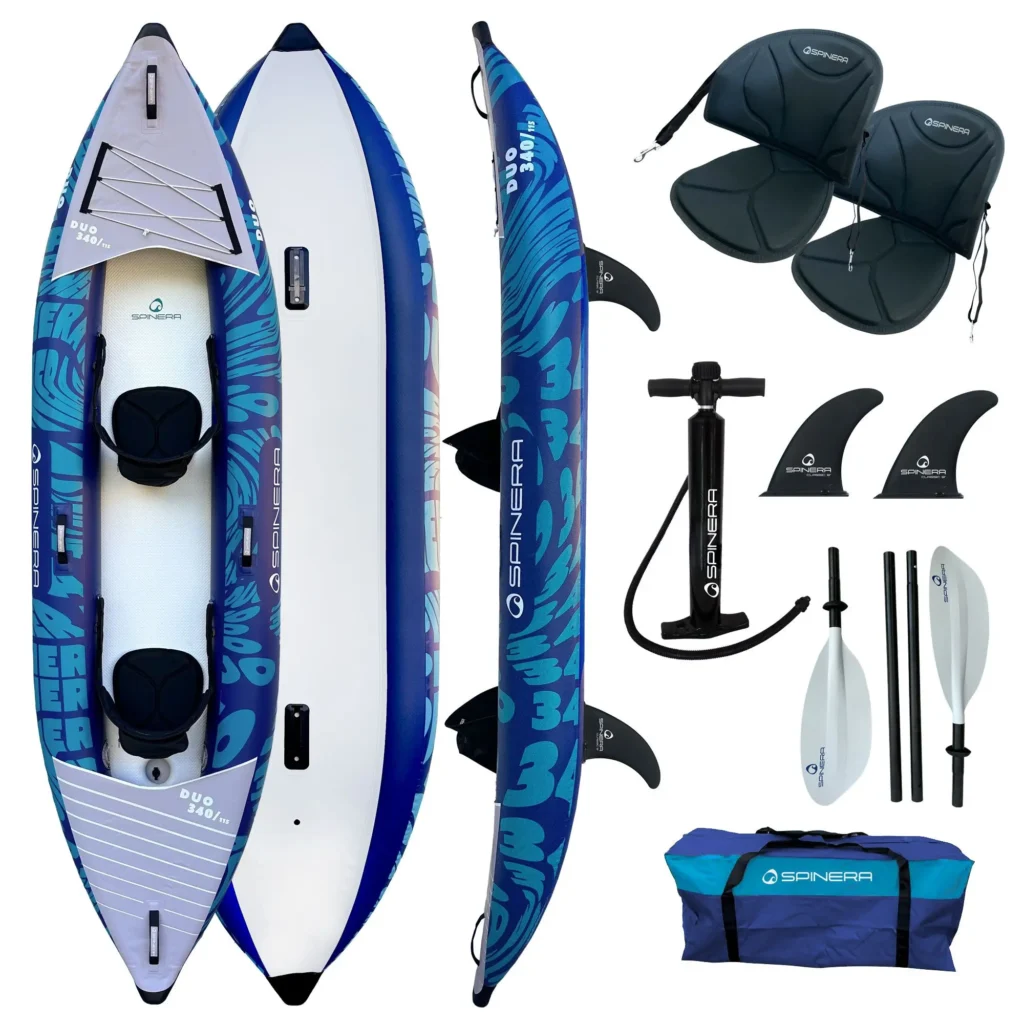Spinera Duo 340 er en brukervennlig og stabil oppblåsbar kajakk for 2 personer, perfekt for fritidspadling, rolige turer i skjærgården, innsjøer og elver. Med solid konstruksjon, dropstitch-dørk og lav vekt på kun 9,9 kg, får du en kajakk som er enkel å transportere, rask å blåse opp og komfortabel å padle.