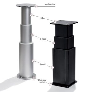 Dudge 77 – elektrisk rund bordfot i aluminium 24V